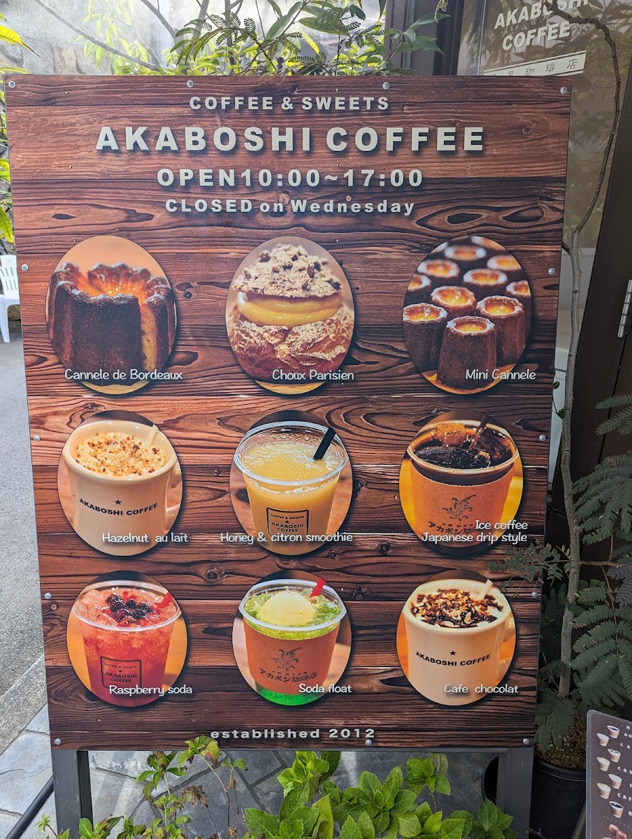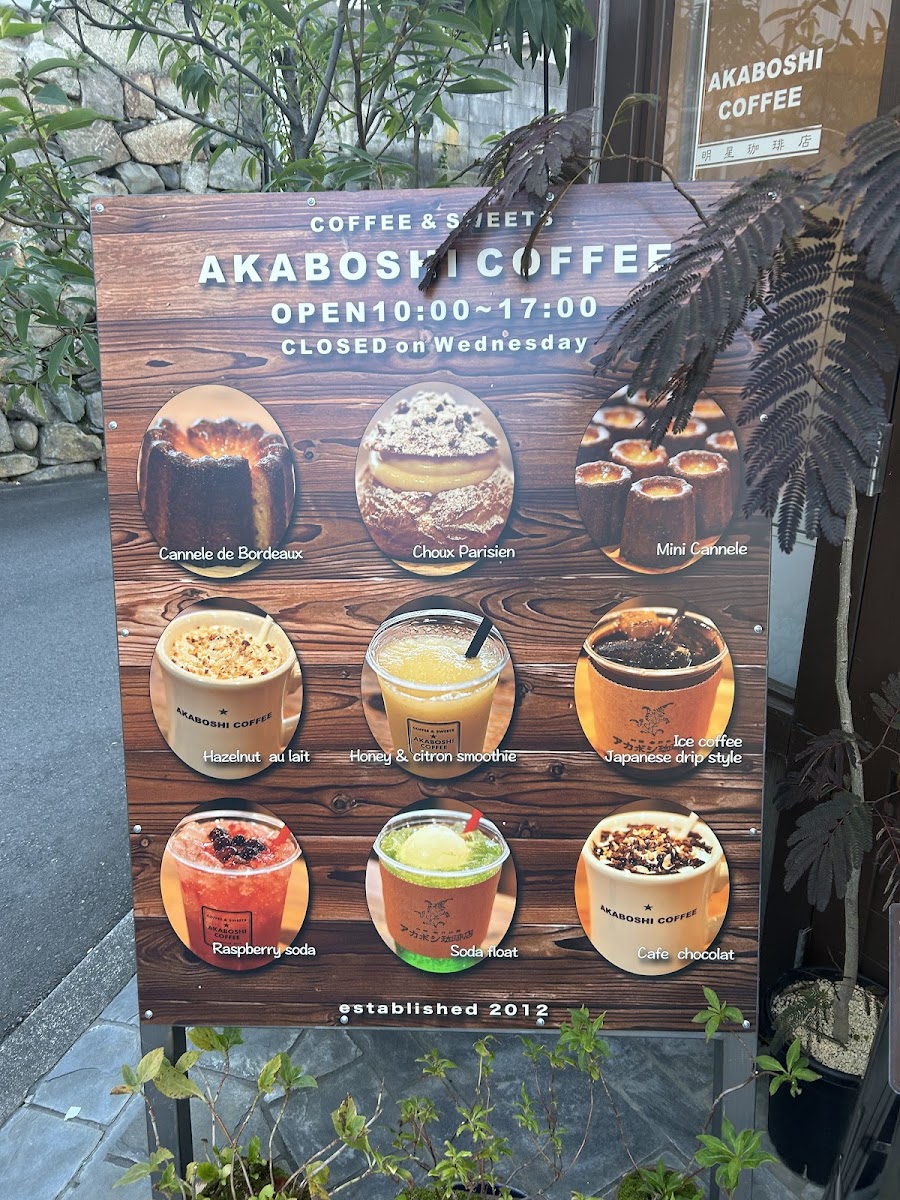 At Akaboshi Coffee, the menu comes together as a well-curated balance of specialty coffee, refreshing non-coffee options, and thoughtfully paired desserts, creating a cohesive tasting experience rather than a scattered list of items. Classic coffee lovers will appreciate staples like ブレンドコーヒー, アイス コーヒー と ミニカヌレ, and コーヒーフロート, which highlight clean roasting and approachable flavors, while milk-based drinks such as カフェラテ シュークリーム, アイスカフェラテ, キャラメルラテ, and Cafe Mocha add a comforting richness that feels carefully calibrated rather than overly sweet. The menu shines when coffee is paired with pastries, especially combinations like ブレンドとシュークリーム, シュークリームとカフェラテ, アイスオーレとカヌレ, and アイスカフェショコラ&カヌレ, where the light bitterness of coffee balances the creamy or caramelized notes of the desserts. For those looking beyond traditional coffee, drinks such as Coffee Honey Orange, 瀬戸内レモンスカッシュ, and 生ミックスジュース provide a refreshing contrast, showcasing brighter citrus and fruit-forward profiles that suit warmer days or a lighter palate. The inclusion of sapporo 生ビール adds an unexpected but casual touch, broadening the appeal of the menu and making the café feel suitable for relaxed afternoon breaks as well as quick stops. Overall, the menu feels intentionally designed, with each item-whether a standalone drink or a coffee-and-dessert set-contributing to a consistent identity that emphasizes balance, comfort, and small indulgences without unnecessary complexity.